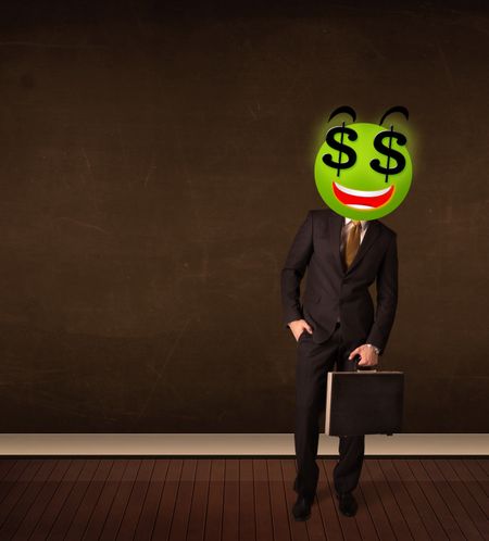 Businessman with dollar sign smiley face