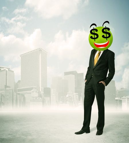 Businessman with dollar sign smiley face