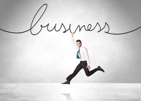 Businessman hanging on a business rope