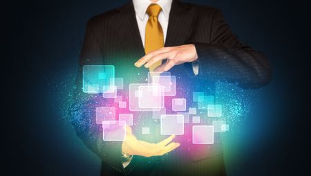 Businessman holding abstract glowing icons