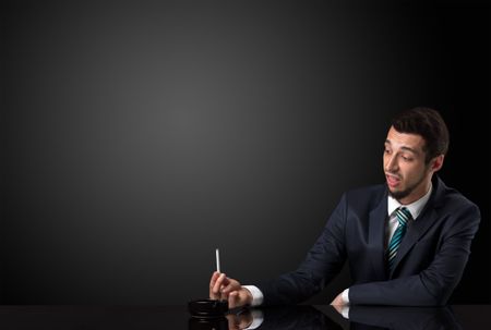 Businessman holding cigarette in his hand and wearing suit.