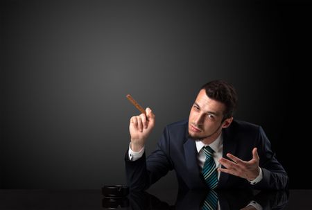 Businessman holding cigarette in his hand and wearing suit.