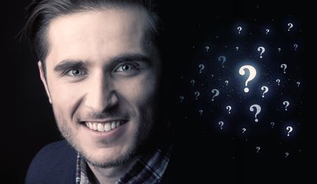 businessman with many question mark near him