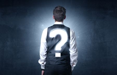 Businessman standing and thinking about questions