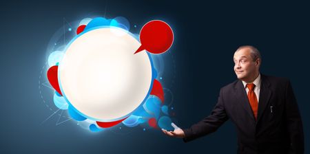 businessman in suit presenting abstract modern copy space