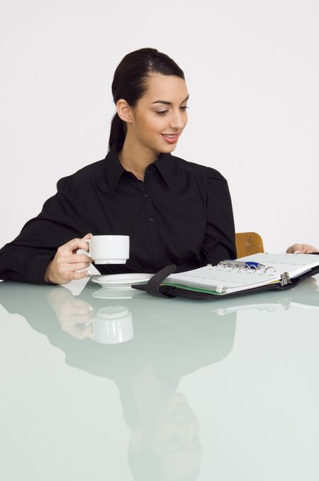 Businesswoman reading day timer.