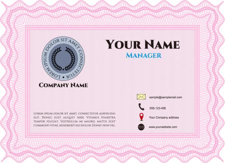 Bussines or presentation card, retro style. Border, frame.With guilloche pattern and background. Nice design.