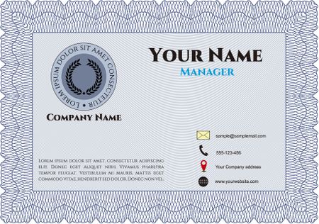 Bussines or presentation card, retro style. Complex design. Border, frame.With guilloche pattern and background.