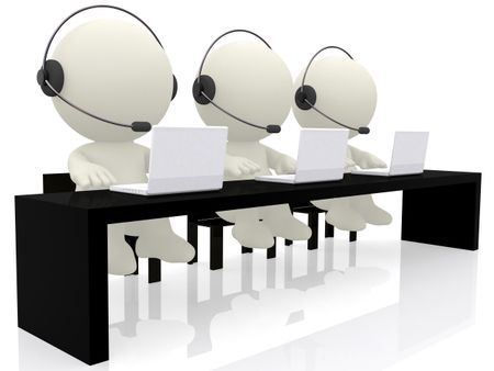 Call center operators sitting at their desks - isolated over a white background