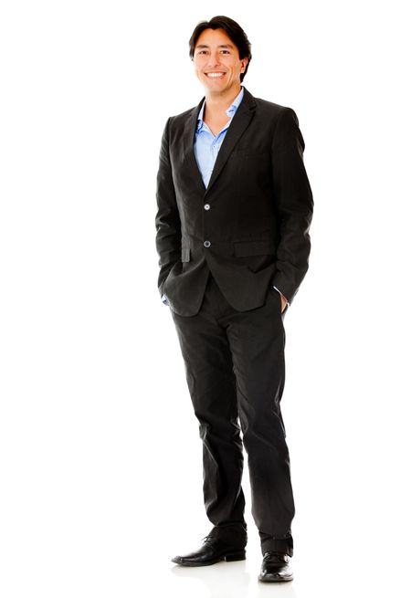 Casual businessman smiling - isolated over a white background