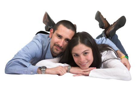 casual couple in love over white