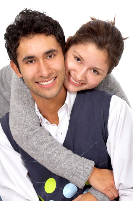 casual couple of young adults smiling isolated over a white background