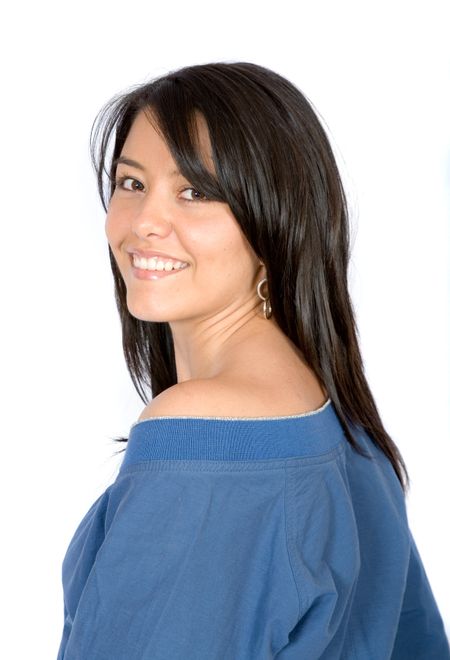Casual Female Portrait over white in blue