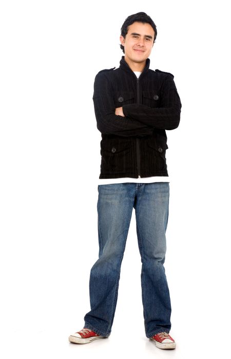 Casual friendly man in jeans and black – isolated over a white background