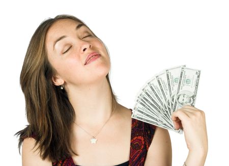 casual girl happy with her money