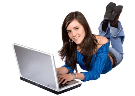casual girl on a laptop on the floor