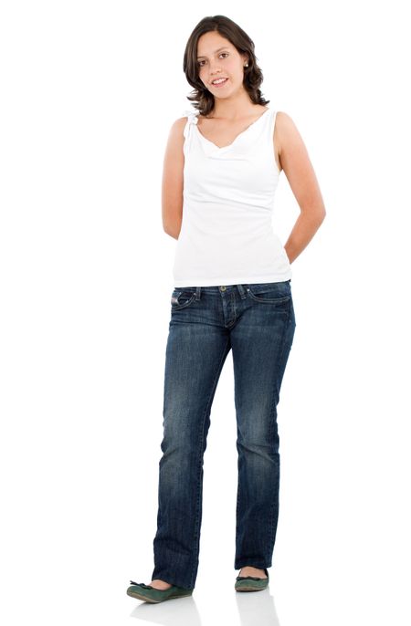 casual girl standing up over a white background