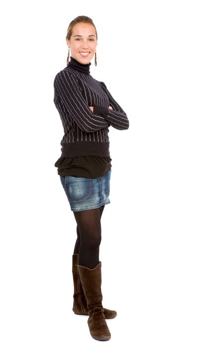 casual girl standing up over a white background