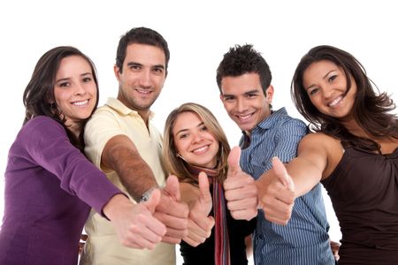 Casual group of friends with thumbs up isolated on white