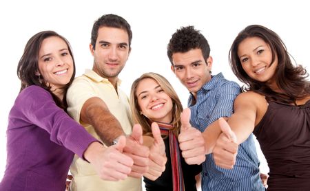Casual group of friends with thumbs up isolated on white