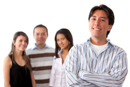Casual group of people led by a man isolated