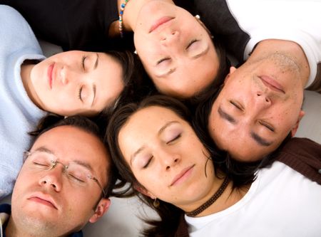 Casual group of people sleeping - isolated over a white background