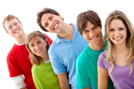 Casual group of people smiling, isolated over white