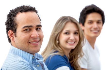 Casual group of people smiling isolated on white