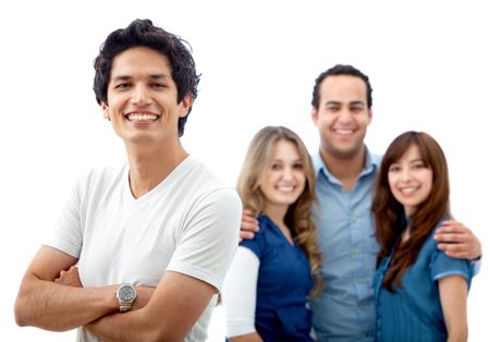 Casual group of people smiling isolated on white