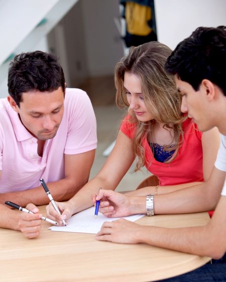 Casual group of students together studying indoors