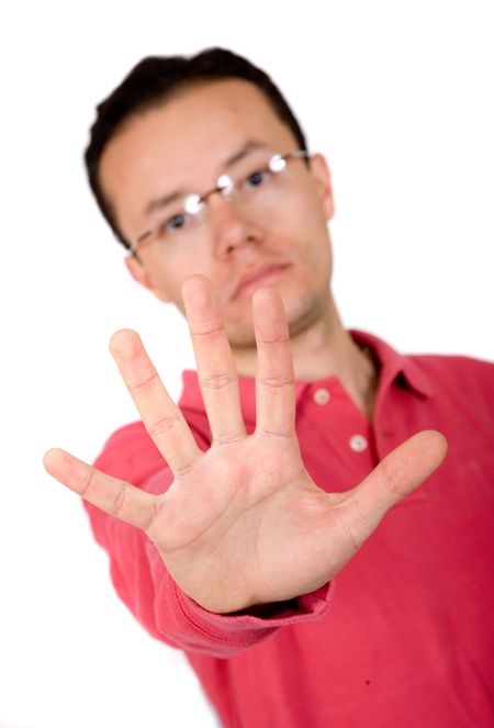 casual guy hand - stop over white background