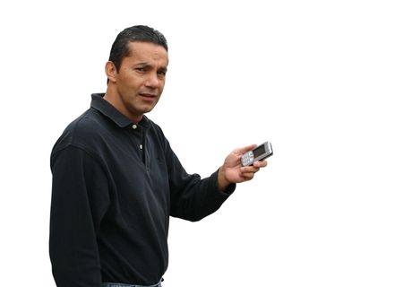casual guy showing a phone