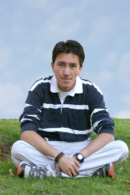 Casual guy sitting in a park, relaxing