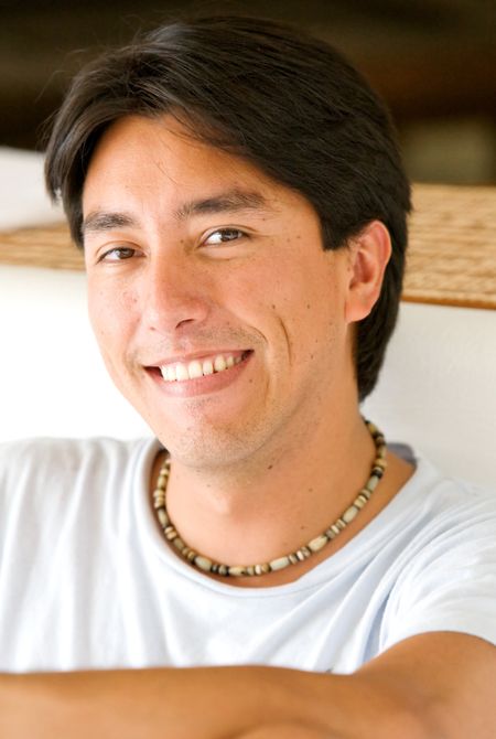 casual male portrait smiling in his summer house