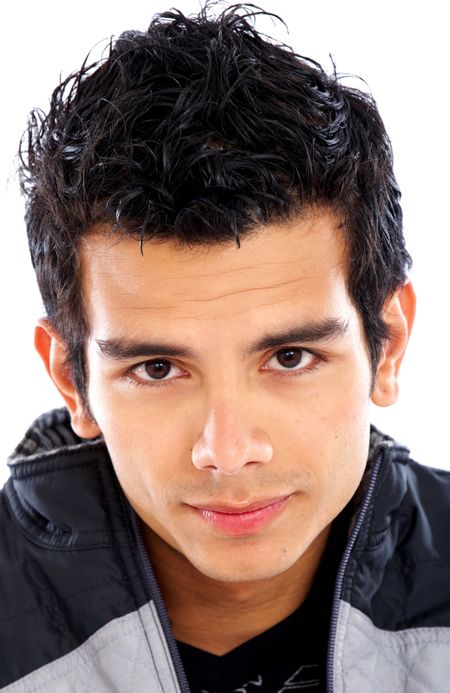 casual man portrait looking serious- isolated over a white background