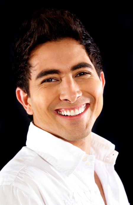 casual man portrait smiling isolated over a black background