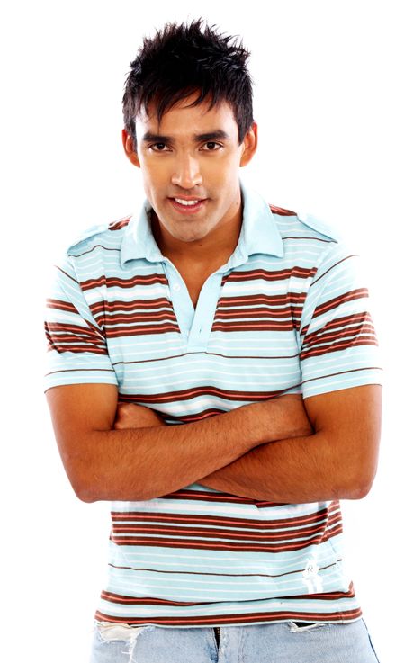 casual man portrait smiling standing up - isolated over a white background