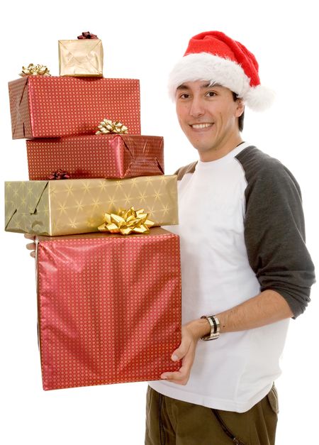 casual santa claus with gifts over white
