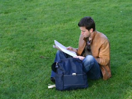 casual student doing some revision in the park
