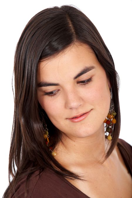 casual woman portrait looking down with a pensive face