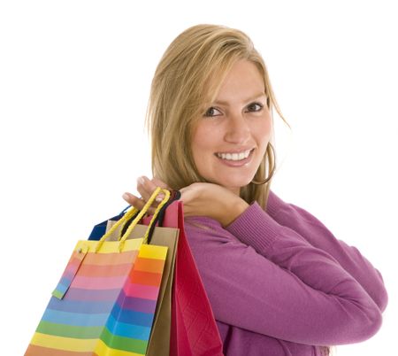 Casual woman shopping bags isolated over a white background