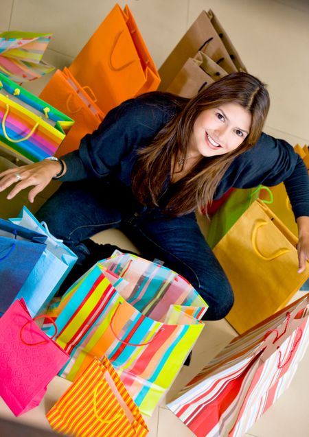 Casual woman with shopping bags in a store smiling