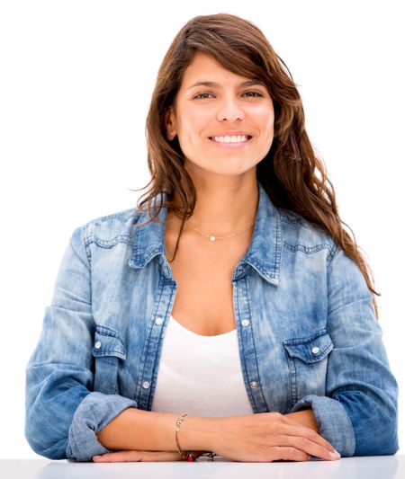 Casual woman smiling - isolated over a white background