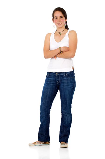 casual woman smiling isolated over a white background