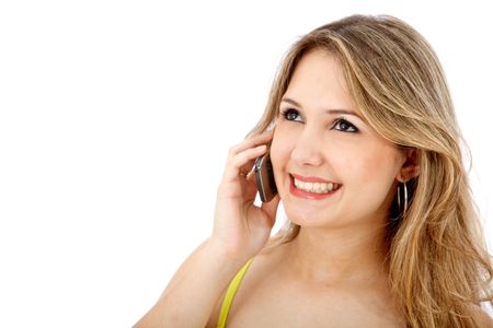 casual woman talking on the phone - isolated over white