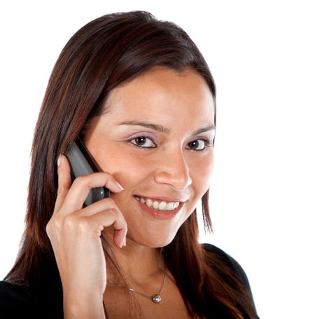 casual woman talking on the phone isolated over a white background