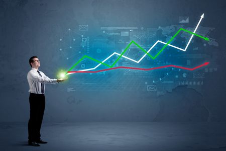Caucasian businessman holding a stock-market, business and finance sign composition