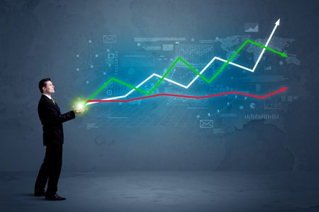 Caucasian businessman holding a stock-market, business and finance sign composition