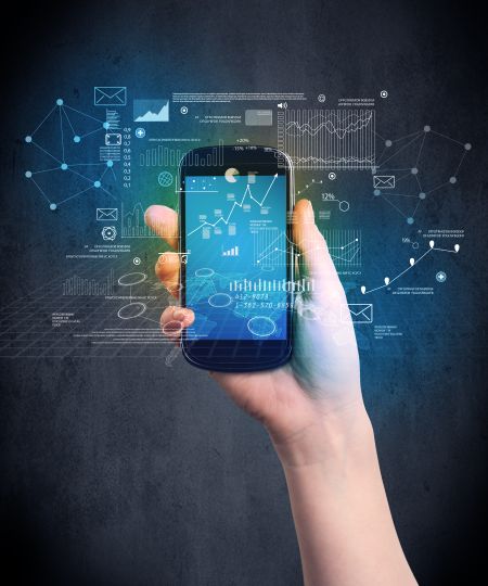 Caucasian hand in business suit holding a smartphone