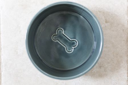 Ceramic dog bowl on a kitchen floor